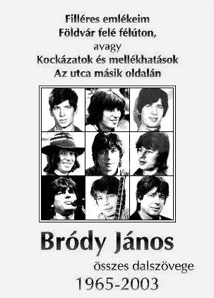 Örömmel közöljük, hogy megjelent Bródy János összes eddig írt dalszövegét időrendben tartalmazó kötet, mely hasznos és tartalmas segítségül szolgál az eltűnt idők nyomában járó felfedezőknek, és kockázatok és mellékhatások nélkül erőt ad és vígaszt nyújt az utca másik oldalán járóknak is. |